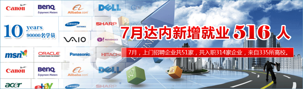 7月份达内3G学院新增就业516人,入职企业314家,学员来自335所高校。实习期间平均工资2164.3元,转正后平均工资2715.5元,其中转正后工资在4500元以上的有236人,占45.7%,4000元以上的有431人,占83.5%。314家入职企业中包括境内外上市公司46家、国内知名企业107 家、国内一流企业 35家、国企2家、世界500强2家……