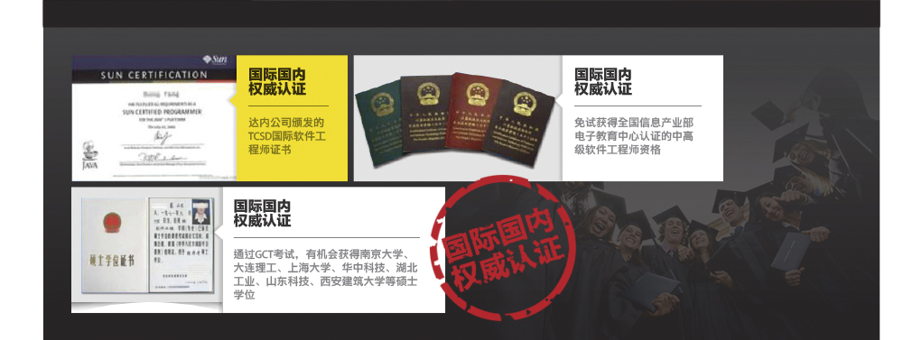 5:5大课程优势,4:4大课程阶段,国际国内权威认证