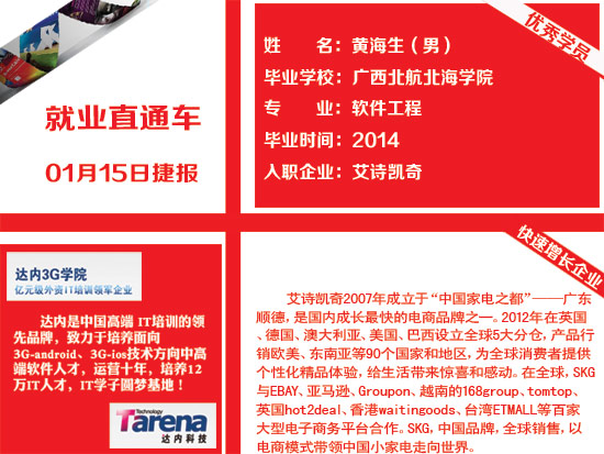 【01-15】广州达内学员黄海生入职艾诗凯奇