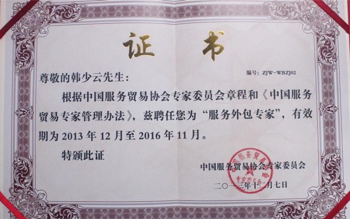 2013年12月7至8日于北京京民大厦举行的中国第三届服务贸易年会中,服务贸易协会正式举行聘任仪式,达内时代科技集团有限公司CEO韩少云先生连任中国服务贸易专家委员会副主任专家委员。这是达内又一荣誉的日子。达内时代科技集团CEO韩少云先生领导着达内集团不断锐意创新,遵照着中国服务业和服务贸易的发展战略,在力求为每一位学员提供最优秀的IT培训和职业培训服务的同时肩负起企业的社会责任,为中国服务贸易领域不断贡献力量,和业内广大同仁一起为在全球范围内推广中国服务品牌,提升中国服务国际影响力而不断努力!