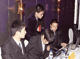 - 为了展示达内学员的技术实力和水平,会议现场特别安排了“现场开发”的环节。在与会嘉宾的监督下,14名达内的在读学员,分成4组,在约60分钟的时间内制作开发出一套抽奖程序,并现场测试,成功为嘉宾们抽取一、二、三等奖品。整个环节赢得了到场企业代表的极大关注和赞赏。